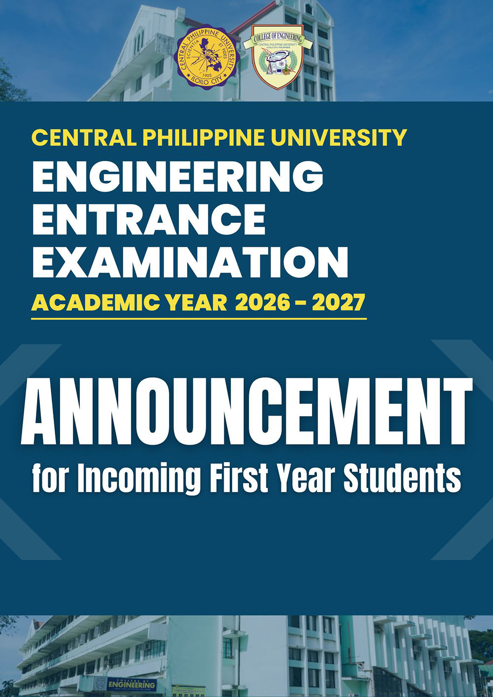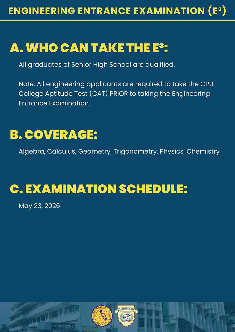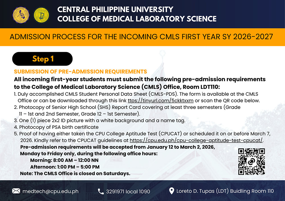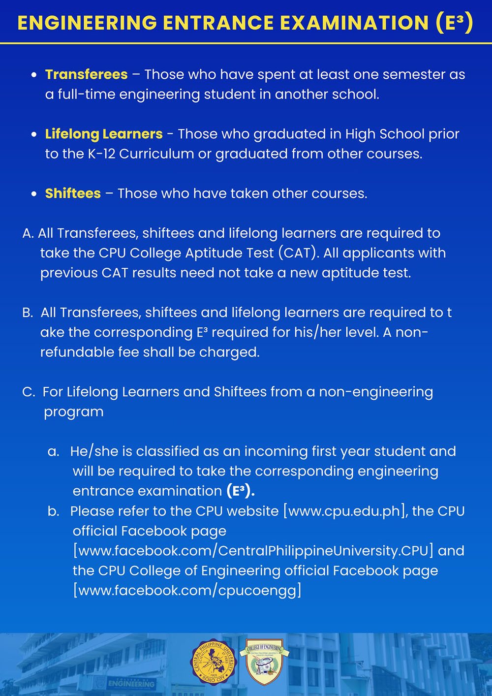 Note: CPUCAT is still REQUIRED for applicants of the College of Engineering, College of Pharmacy, and College of Medical Laboratory Science