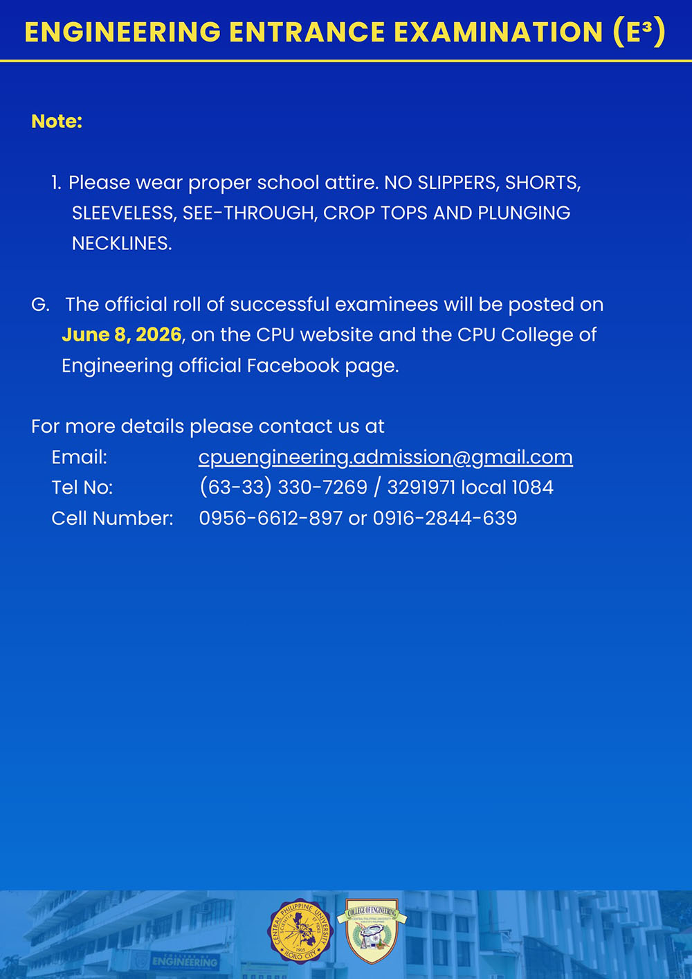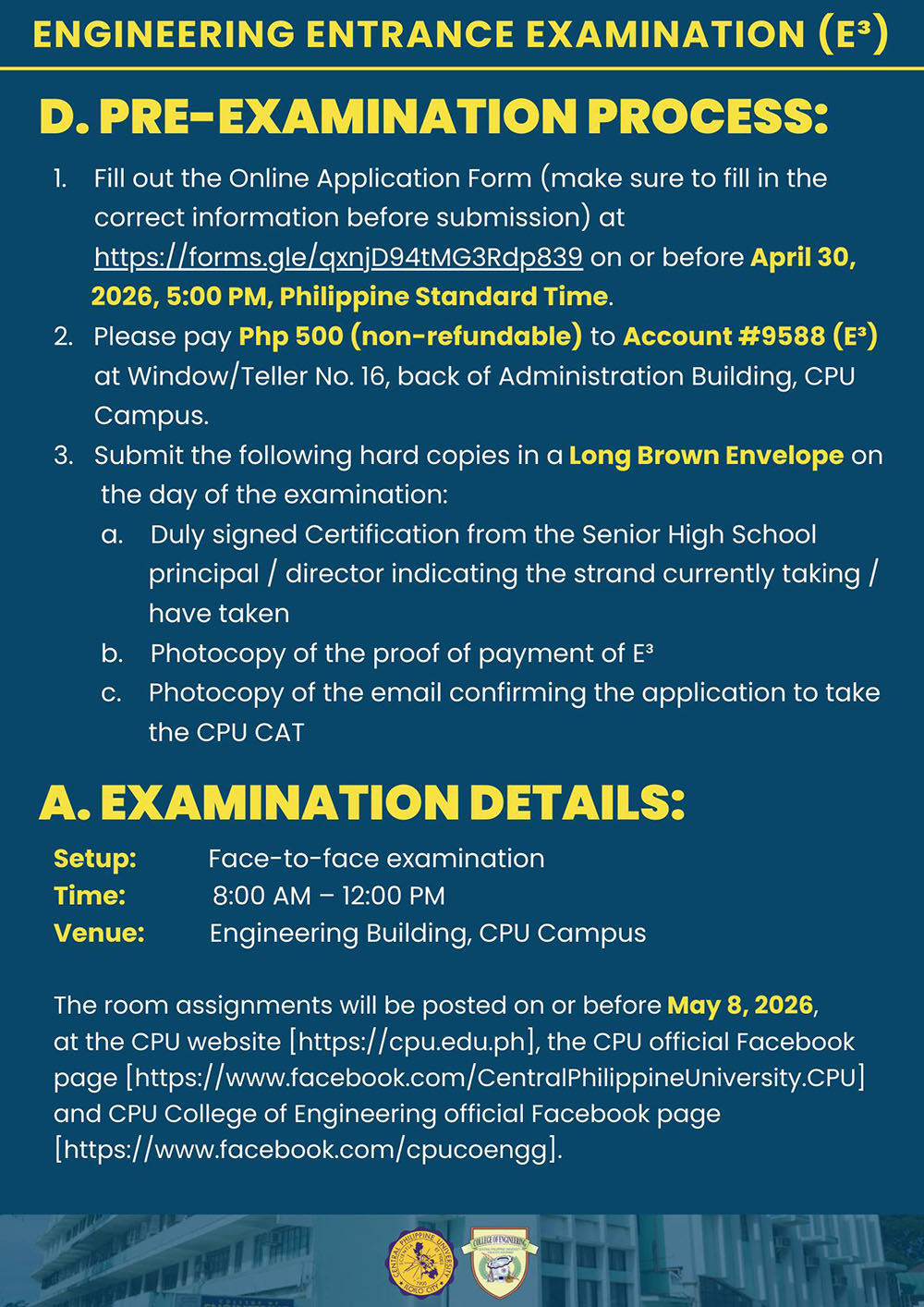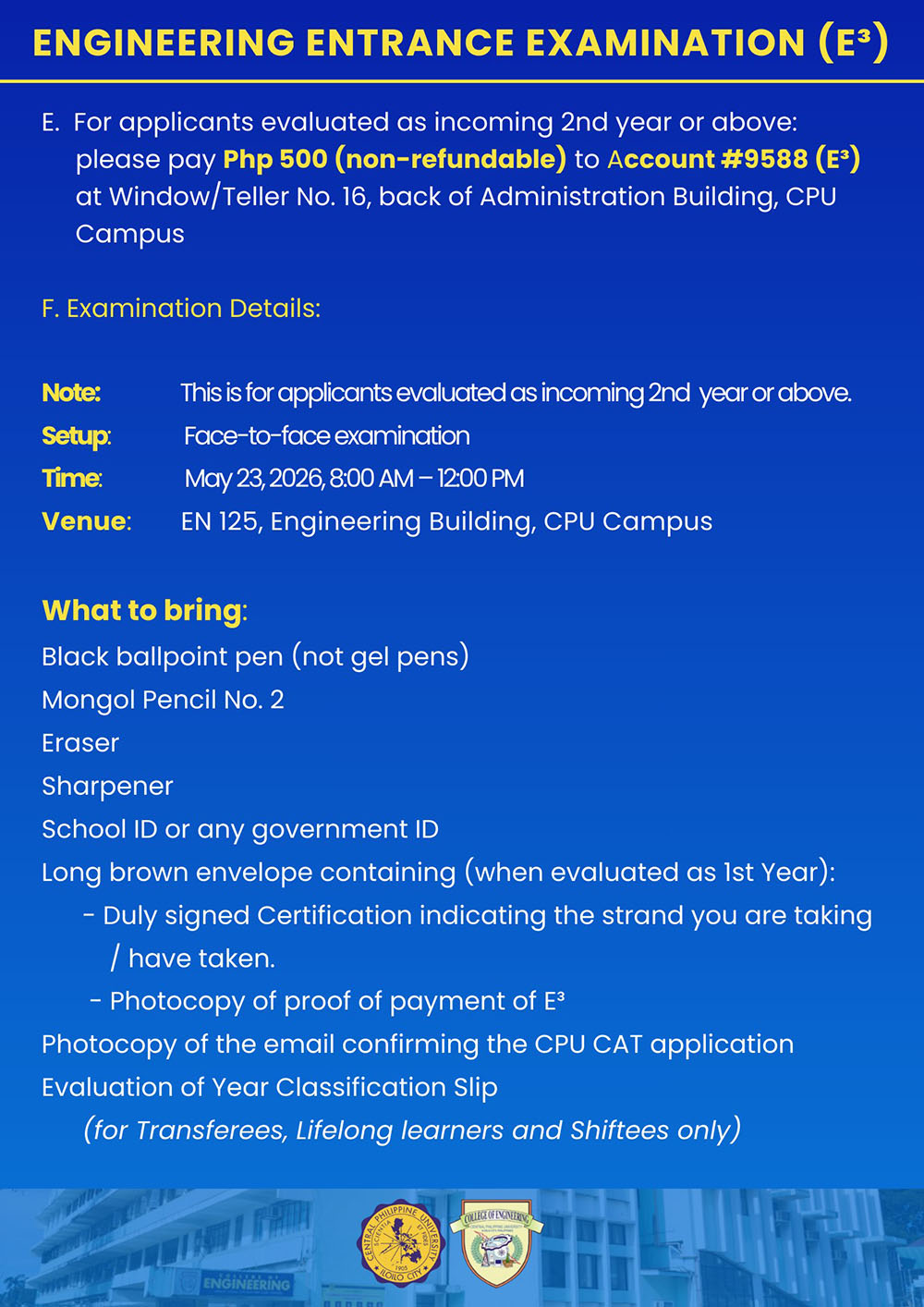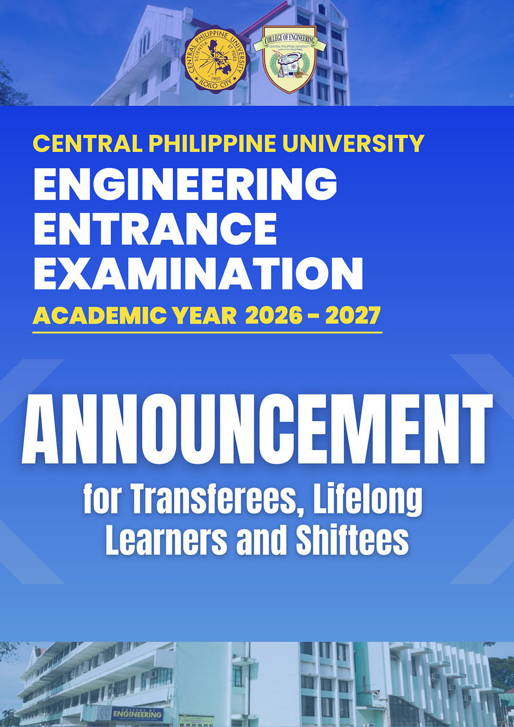 Note: CPUCAT is still REQUIRED for applicants of the College of Engineering, College of Pharmacy, and College of Medical Laboratory Science