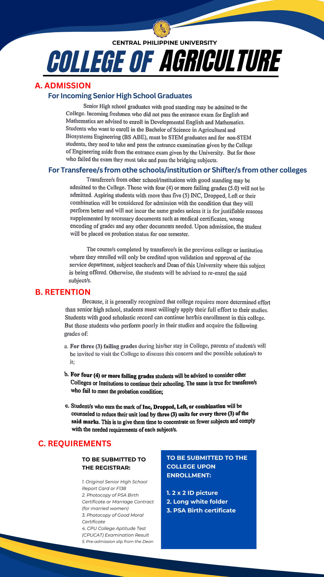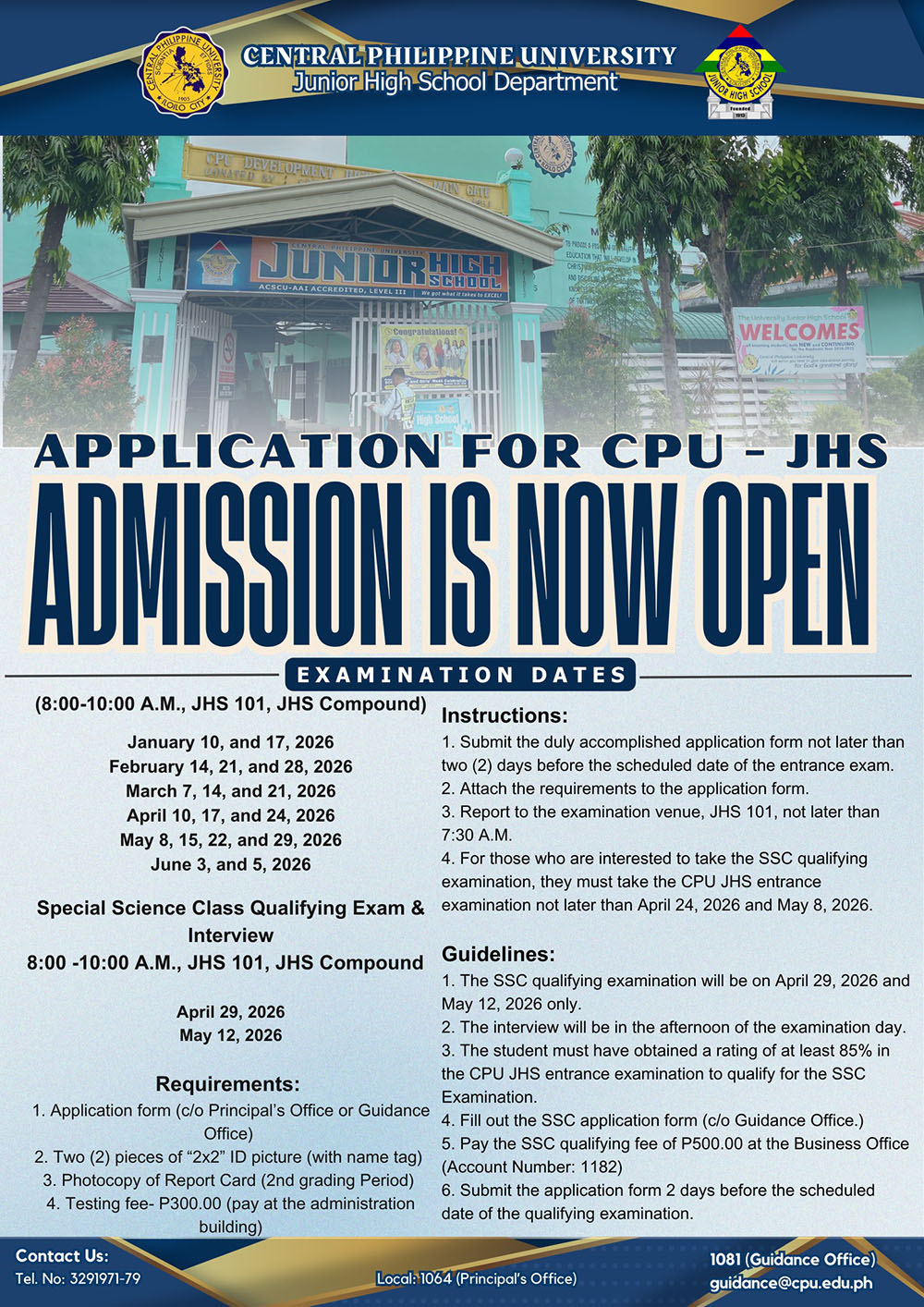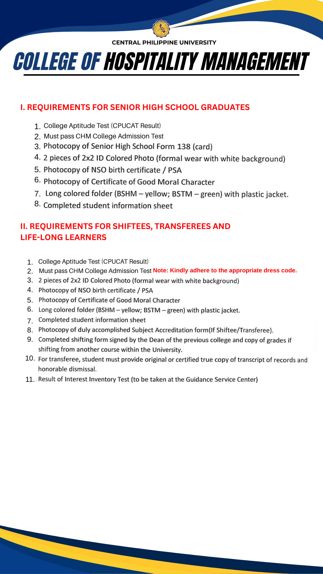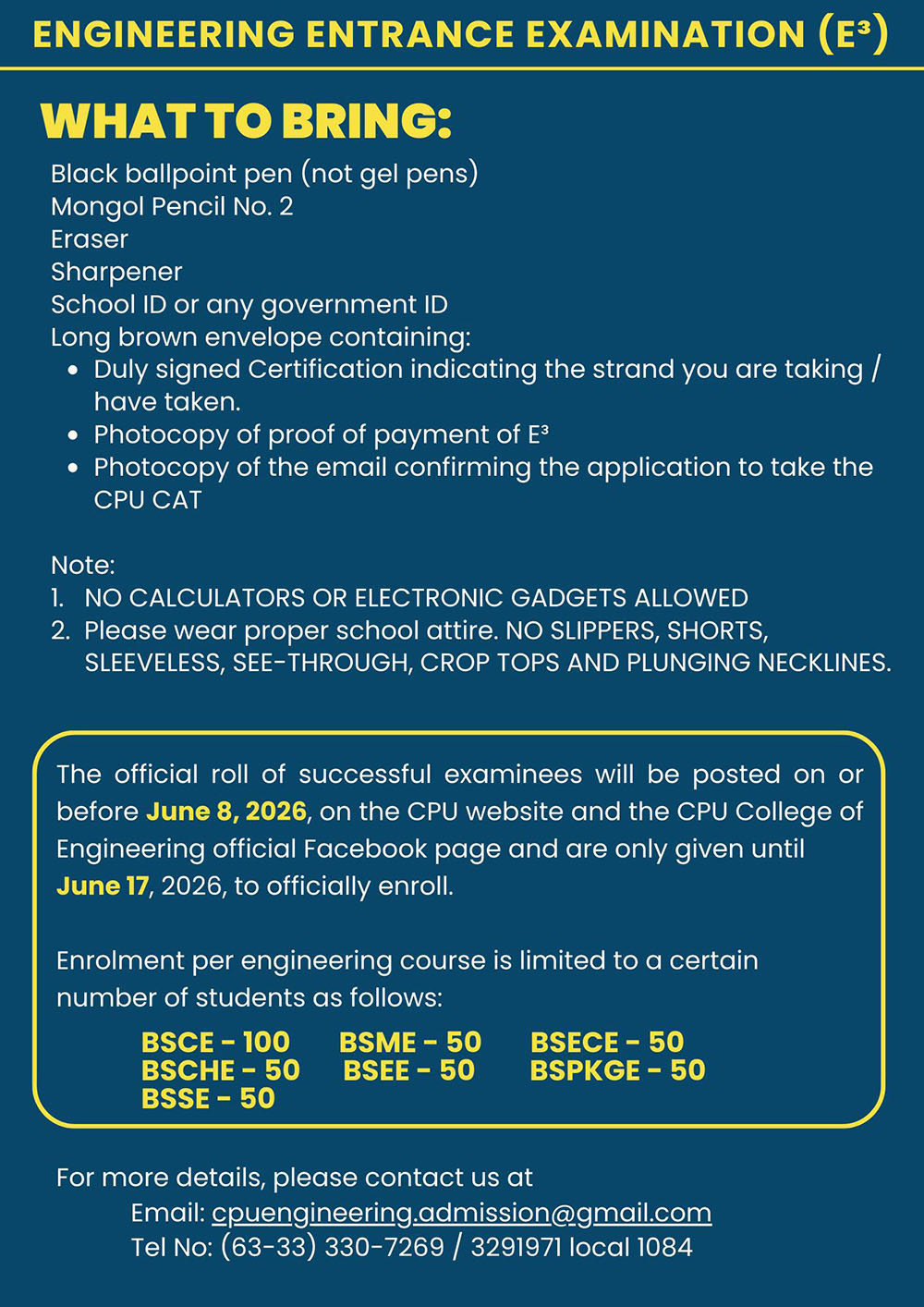Note: CPUCAT is still REQUIRED for applicants of the College of Engineering, College of Pharmacy, and College of Medical Laboratory Science