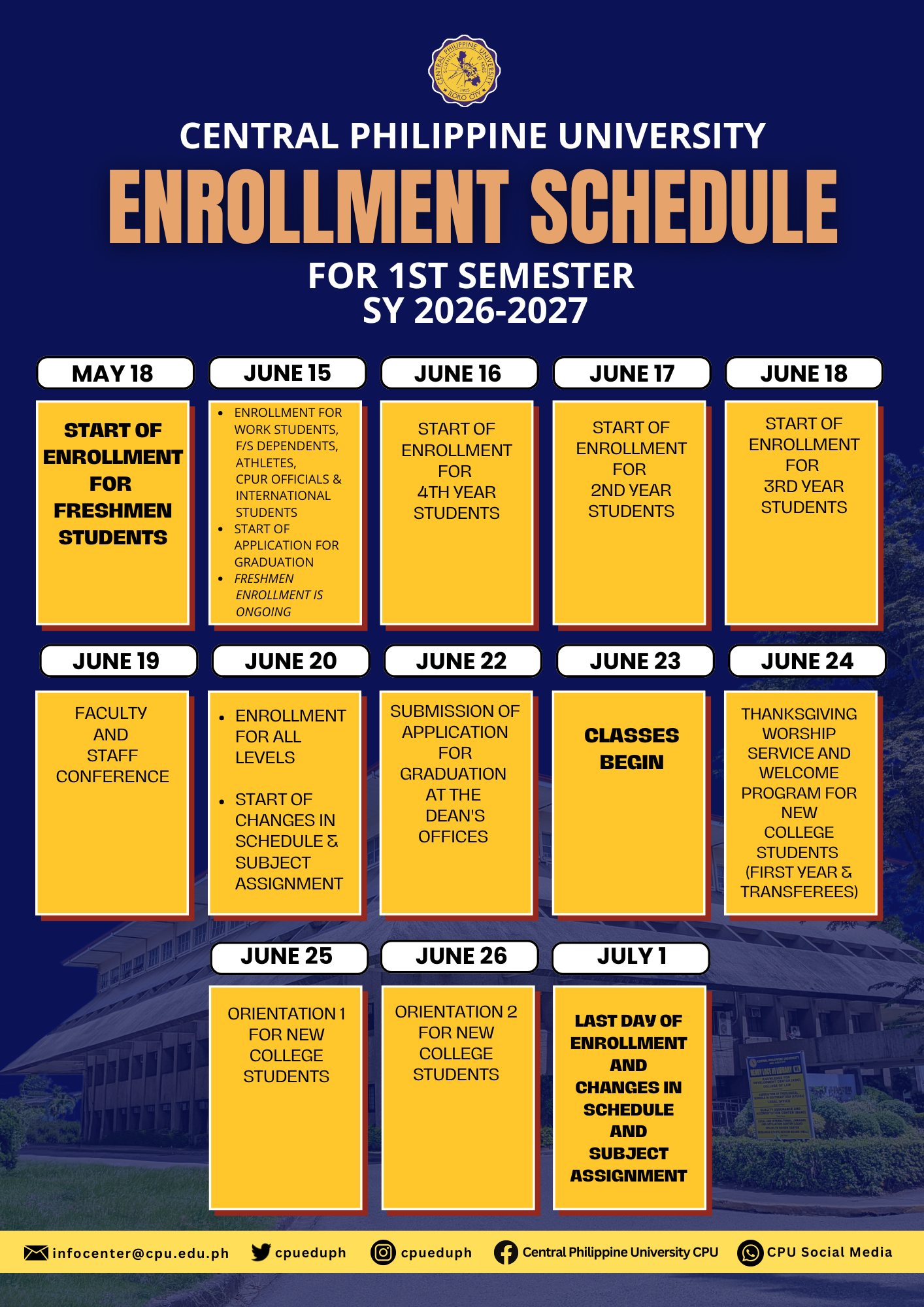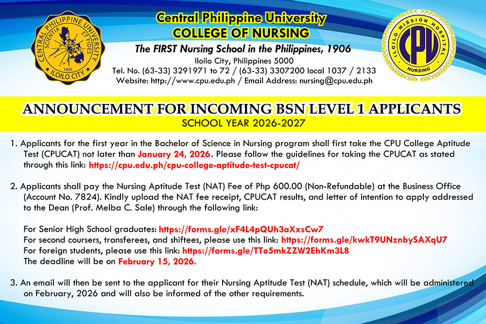 Like and follow the official Facebook page of Central Philippine University for updates: