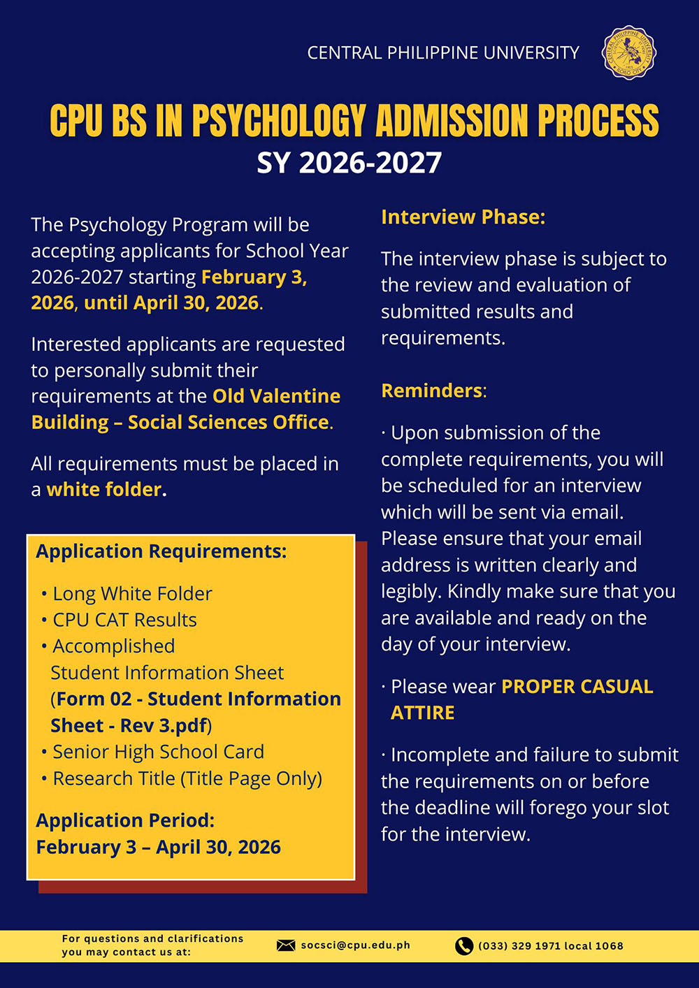 FB/Messenger: Central Philippine University – CPU