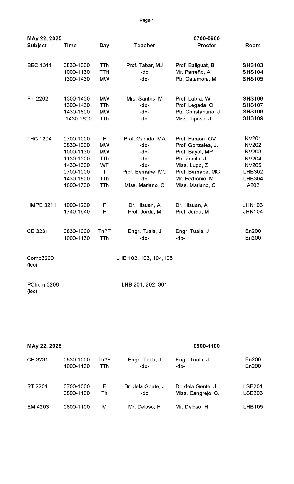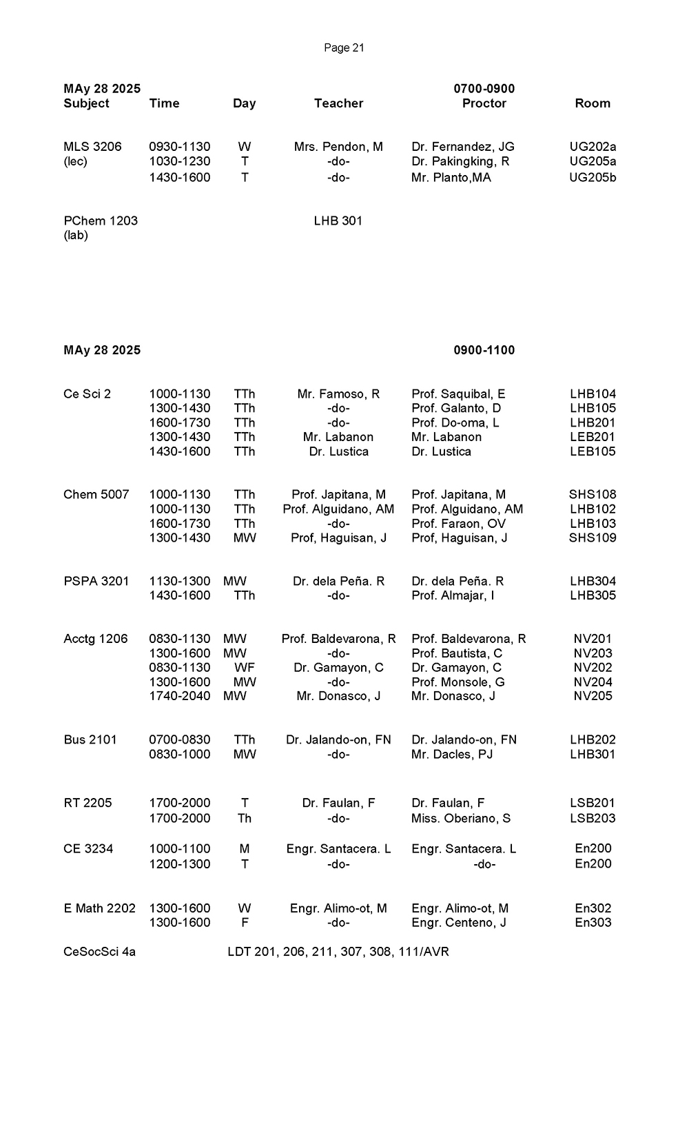 Final Schedule of Final Examinations – Second Semester 2024-2025 by Central Philippine University | May 14, 2025 | announcements Click here to download PDF format