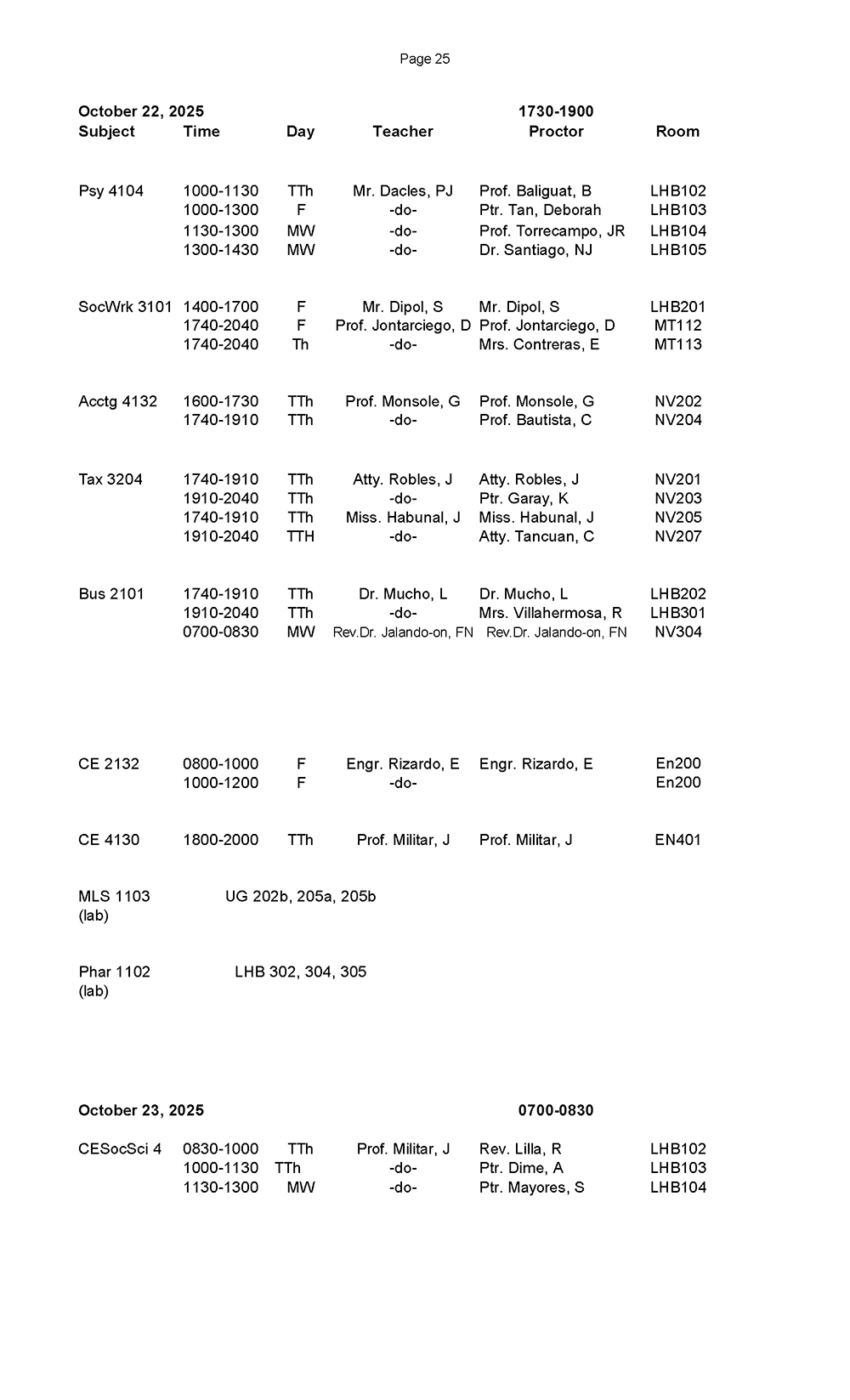 Mid-Term Examinations Schedule – First Semester A.Y. 2025-2026 by Central Philippine University | Oct 13, 2025 | announcements