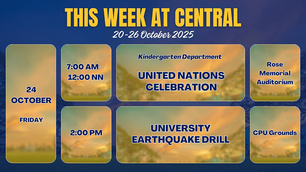 This Week at Central October 24, 2025 by Central Philippine University | Oct 21, 2025 | Event Calendar | 0 comments