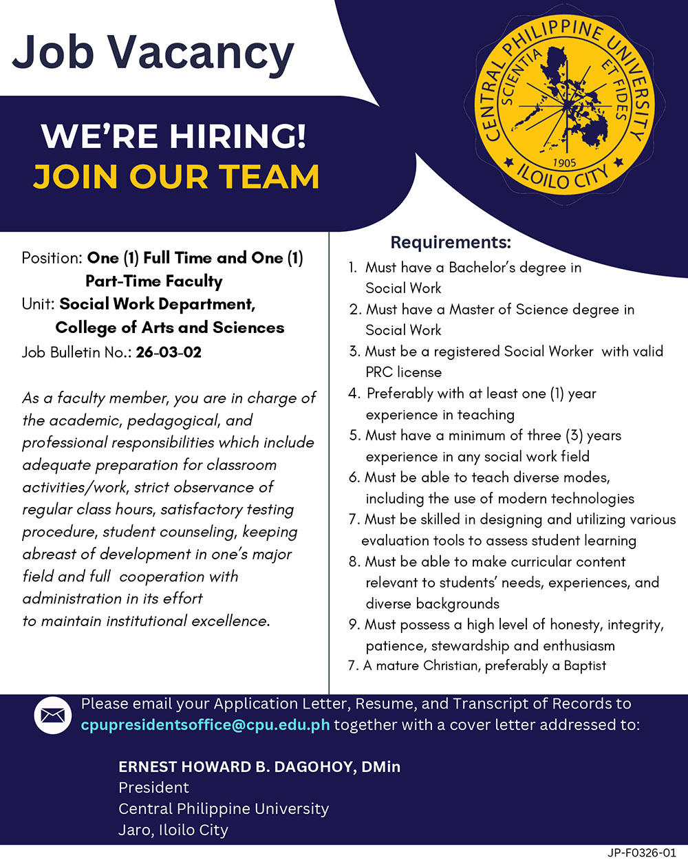 One (1) Full Time and One (1) Part-Time Faculty – Social Work Department