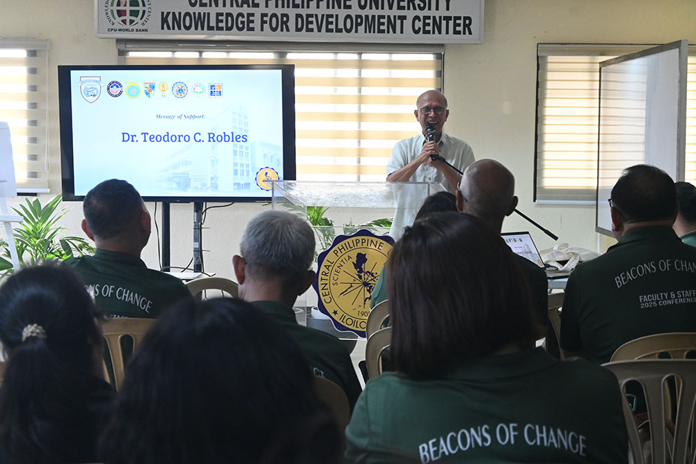 Dr. Teodoro C. Robles, former Central Philippine University President and proud alumnus of the College of Engineering Batch 1964, engagingly shares his message of support and inspiration with the Centralian Engineering community present at the kick-off event.