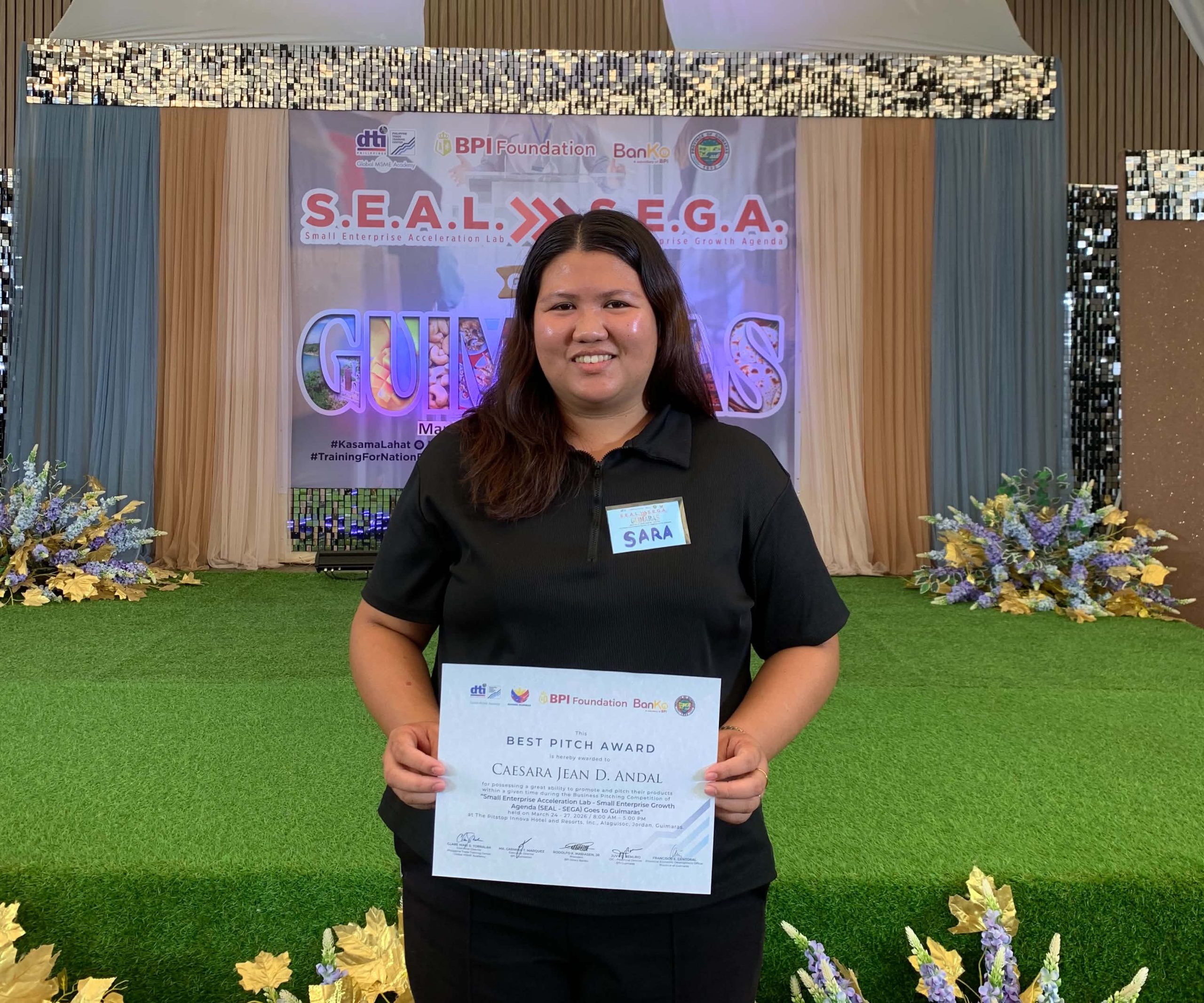 On March 27, 2026, Caesara Jean D. Andal, a fourth-year BS Entrepreneurship student from the College of Business and Accountancy (CBA) of Central Philippine University (CPU), won the prestigious “Best Pitch Award” at the Department of Trade and Industry’s Small Enterprise Acceleration Lab – Small Enterprise Growth Agenda (SEAL-SEGA), held at The Pitstop Innova Hotel and Resorts, Inc. in Jordan, Guimaras.