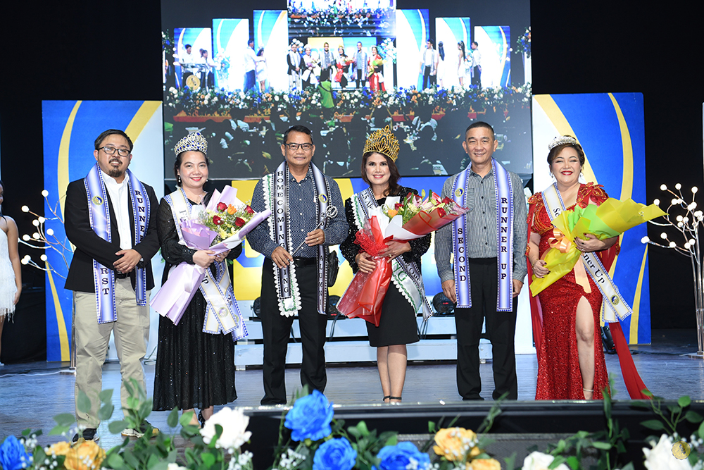 The 2025 Alumni King and Queen from the College of Nursing (center pair) were crowned during the celebration, with the College of Commerce/Business Administration (left pair) as First Runner-Up and the College of Education (right pair) as Second Runner-Up.