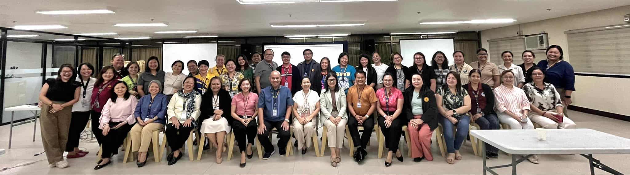 Attendees of the Orientation on Writing Functional Objectives and Conducting Opportunity and Risk Assessment gather for a commemorative group photo following the successful activity held at the Henry Luce III Library.