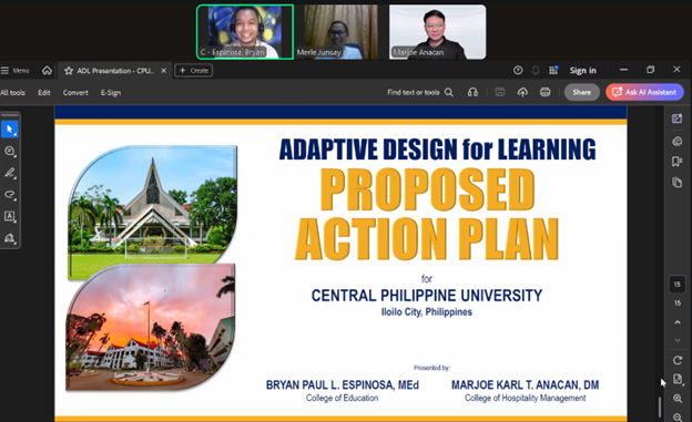 As the educational landscape faces numerous challenges ushered in by technology and other disruptions, Central Philippine University is ensuring its faculty remains at the forefront of innovation. Two CPU faculty members, Dr. Marjoe Karl T. Anacan of the College of Hospitality Management and Asst. Prof. Bryan Paul L. Espinosa of the College of Education, have successfully completed the “Adaptive Design for Learning” certificate course. This specialized 12-week program is aimed at equipping college educators with skills in curriculum development meant to enhance courses that offer online and blended learning modalities.