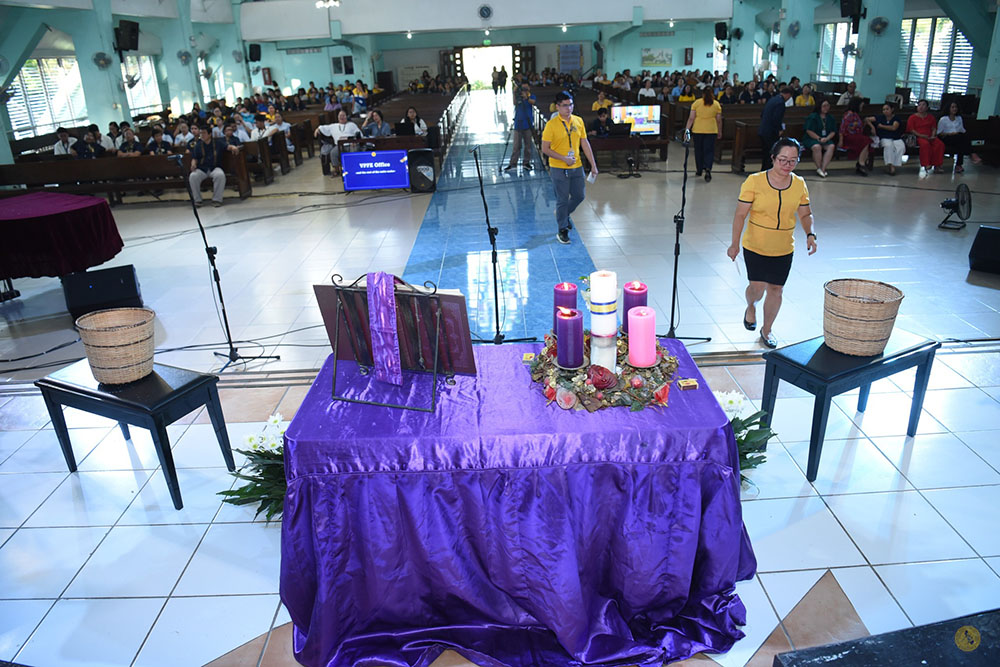 The community then sang “Indi Magluya-luya,” followed by the lighting of the Advent candle and the Hymn of Anticipation, “O Come, O Come, Emmanuel,” led by Rev. Karel Grace D. Victoria. The Scripture reading from Luke 2:11–14 was delivered by Pastor Louvel Edson L. Caspe, after which the CPU–College of Nursing performed the song “We Are the Reason.”