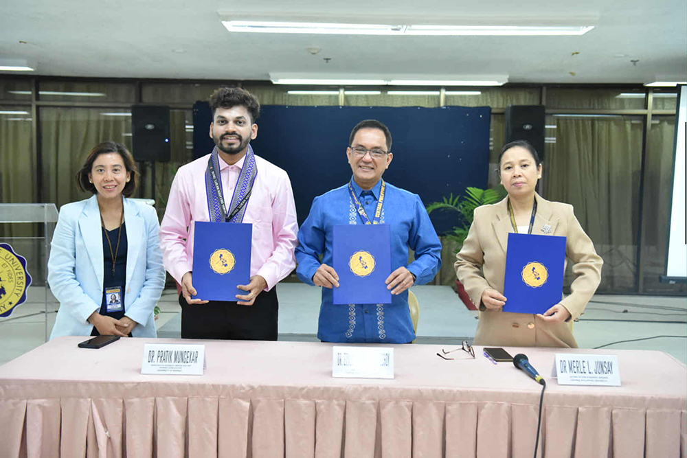 A key highlight of the event was the signing of a Memorandum of Understanding (MOU) between CPU, represented by Rev. Dr. Dagohoy, and Sharda Education Society, University of Mumbai, represented by Dr. Pratik Rahan Mungekar. Witnesses to the signing included Dr. Aries Roda D. Romallosa, Acting Vice President for Research, Development, and Extension, and Dr. Merle L. Junsay, Acting Vice President for Academic Affairs.