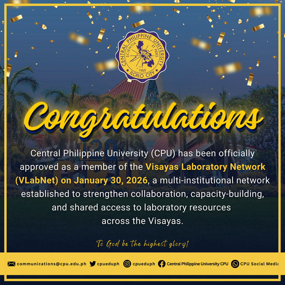 Central Philippine University (CPU) has been officially approved as a member of the Visayas Laboratory Network (VLabNet) on January 30, 2026, a multi-institutional network established to strengthen collaboration, capacity-building, and shared access to laboratory resources across the Visayas.