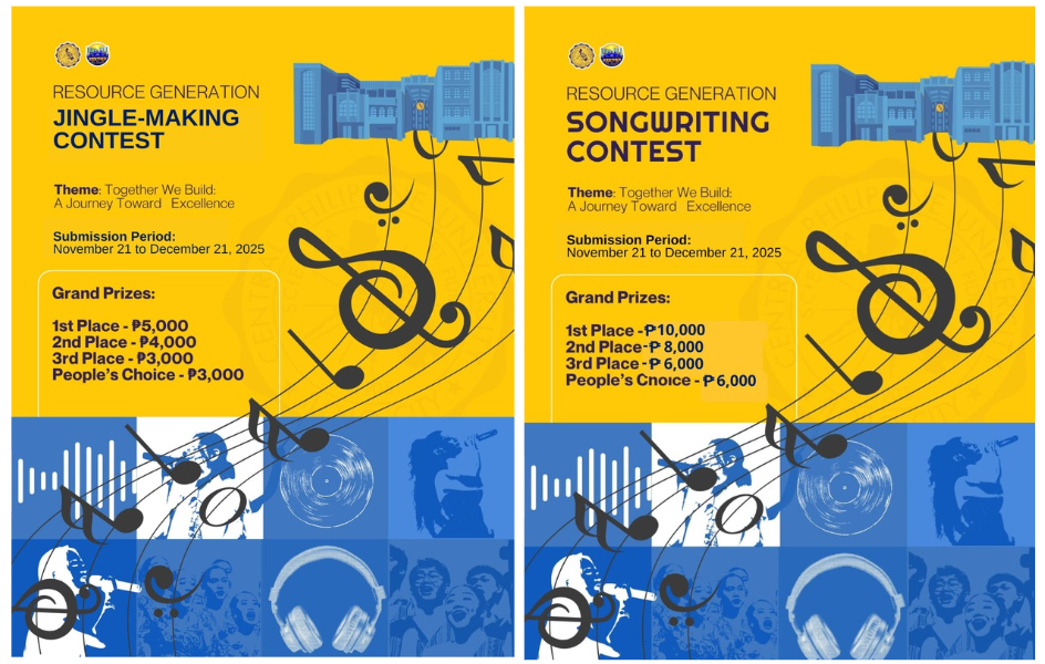 Meanwhile, the Songwriting Contest invites CPU alumni to compose full-length original songs that reflect unity, growth, and excellence. The submission period also runs from November 21 to December 21, 2025. Prizes include ₱10,000 for first place, ₱8,000 for second place, ₱6,000 for third place, and ₱6,000 for the People’s Choice Award. Contest mechanics are available at: https://tinyurl.com/3x3bwfua Entries must be submitted through: https://tinyurl.com/4fmy2mah