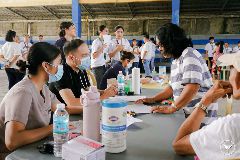 Student volunteers and faculty members arrived as early as 7:30 a.m. to prepare for community members who gathered to receive health services. Several stations were organized inside the gym; each assigned a specific function centered on health education and consultation.