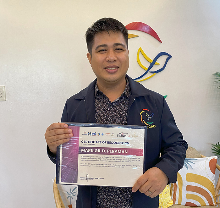 Innovation ecosystems thrive when there are visionaries who bring people, ideas, and opportunities together. At this year’s Western Visayas Startup Awards 2025, Mr. Mark Gil D. Peraman, General Manager of the DOST–CPU CPUGAD Technology Business Incubator (CPUGAD TBI), was honored as a Finalist for the Rainmaker Award—a recognition reserved for leaders who ignite collaboration and create meaningful impact in the startup landscape.