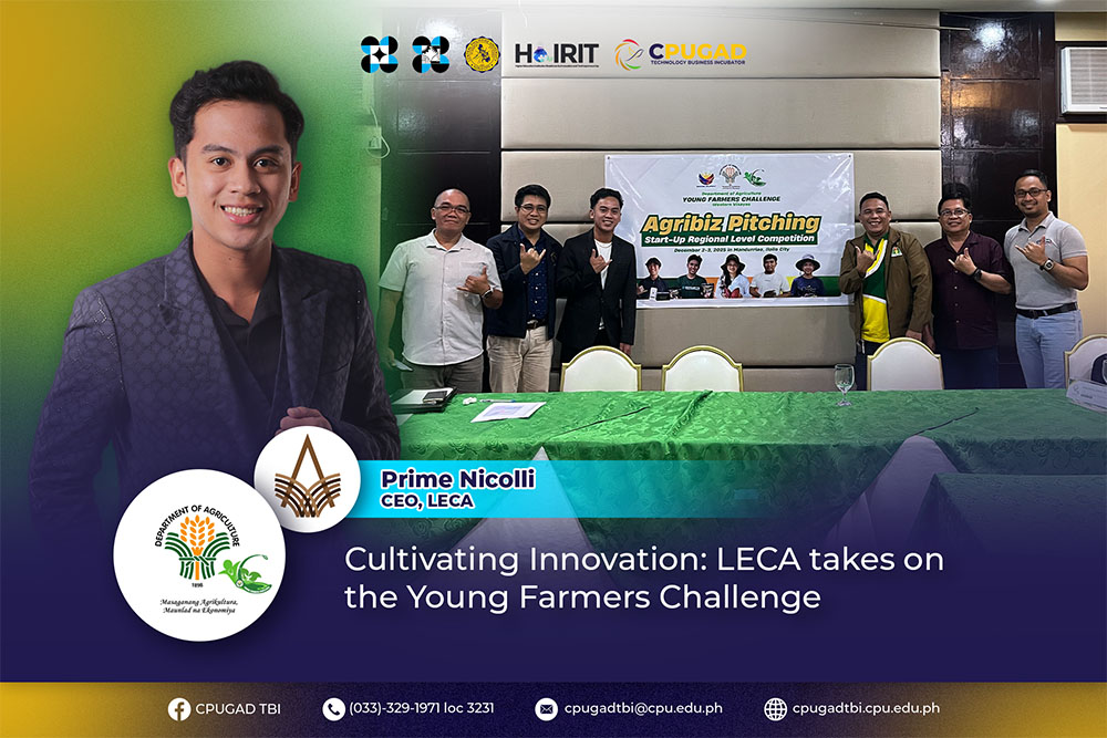 Innovation is often compared to a seed that needs the right environment to grow. At Cultivating Innovation: LECA for the Young Farmers Challenge in CPUGAD TBI, we provide a nest, a supportive space where ideas are nurtured, protected, and prepared to succeed in the real world. This commitment to growth was recently highlighted by the remarkable performance of our incubatee, LECA, led by its visionary CEO, Prime Nicolli Acdol, during the regional level of the 2025 Young Farmers Challenge (YFC) Start-Up Competition.