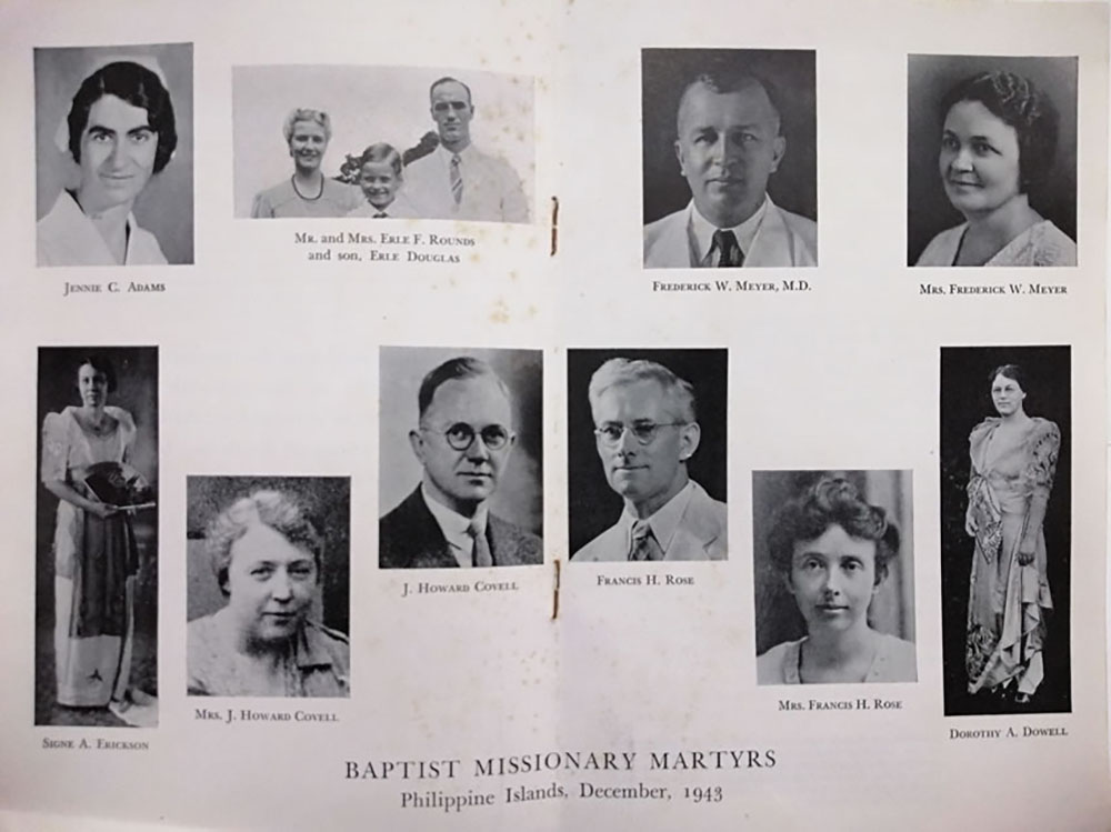 On December 20, 2025, we solemnly commemorate the 82nd anniversary of the martyrdom of American Baptist missionaries at Hopevale, a secluded refuge in the hills of Katipunan, Tapaz, Capiz. These devoted servants: Jennie Clare Adams, Prof. James Howard Covell, Charma Moore Covell, Dorothy Antoinette Dowell, Signe Amelia Erikson, Dr. Frederick Willer-Meyer, Ruth Schacht Meyer, Rev. Dr. Francis Howard Rose, Gertrude Coombs Rose, Rev. Erle Frederich Rounds, Louise Cummings Rounds, and the young Erle Douglas Rounds, gave their lives in service to Christ and to the Filipino people.