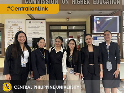 banner liboon copyFull 1 Admission Requirements Click Here to View Scholarship Announcements Click Here to View Feedback Click Here to View Centralian Journeys of Excellence SlideSlideSlide Announcements Click Here To View University Scholarship for the Second Semester SY 2025-2026 CHED TDP-TES GRANTEES 1ST SEMESTER 2024-2025 Mid-Term Examinations Schedule - Second Semester A.Y. 2025-2026 Board of Trustees Statement of Mourning and Remembrance Central Philippine University Federation of Overseas Alumni Associations (CPUFOAA), Inc. Endowment Fund... Central Philippine University Federation of Overseas Alumni Associations (CPUFOAA), Inc. Endowment Fund... Official Statement on the Ongoing Conflict in the Middle East Wesley Zaidan Grant for Education in Asia and Pacific Visit my.cpu.edu.ph Click Here CPU Forms Click Here Frequently Asked Questions Click Here Join US! We are hiring News Click Here To View CPU NSTP holds Mangrove Planting and Coastal Clean-Up Drive Activity Driving Change, Bridging Cultures: Transportation Management as a Catalyst for Inclusive Tourism in CHM’s 19th Voyager IMA-CPU join Student Leadership Conference 2026 in Cebu Centralian Developer Group claims ‘Champion’ Title at CPUR ICreate SDG 2026 PAG-ISA Project 2 Takes Root: Planting Hope and Awareness in Ajuy COHREP Western Visayas holds 5th Regional Skills Olympics 2026 CHM bags multiple awards at SIGRAB Film Festival 2026 CPU LILAC Director shares CPU internationalization experience in CHED RO VI re-orientation on strategic internationalization plan ‹1234567›» Events Calendar This Week at Central August 27, 2025This Week at Central March 16, 2025This Week at Central March 15, 2025This Week at Central March 14, 2025This Week at Central March 13, 2025This Week at Central March 11, 2025‹1234567›» Board Exam Results Click Here To View No posts found. Follow Us