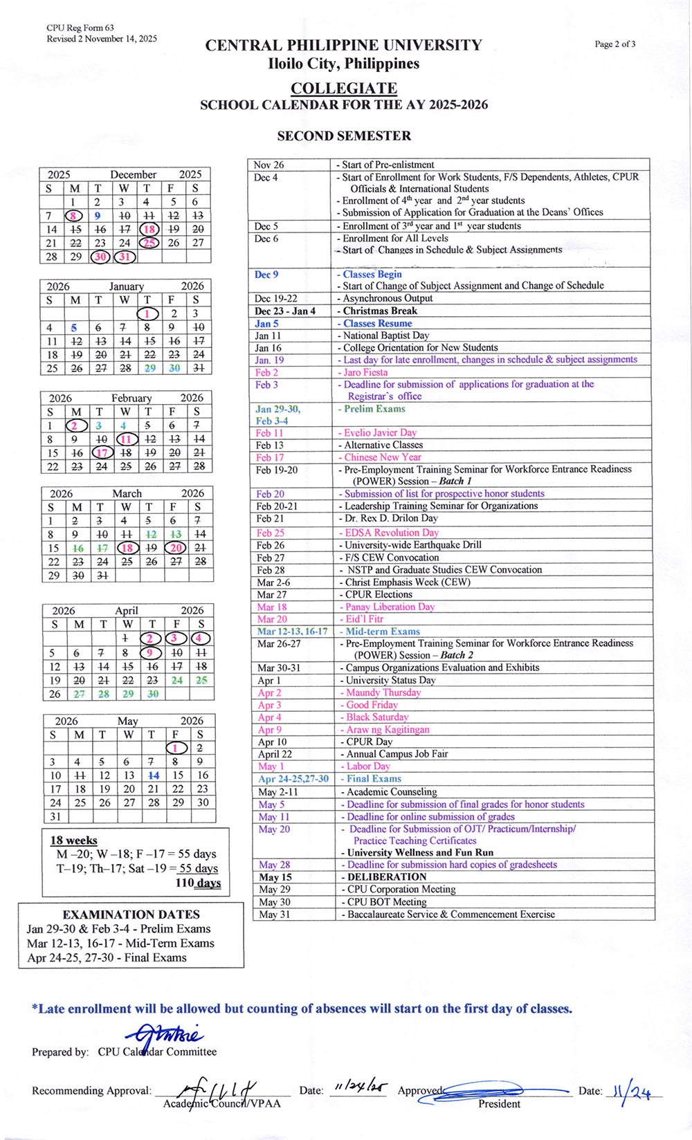 SCHOOL CALENDARS Google CalendarCOLLEGE 2025-2026Medical Laboratory ScienceSENIOR HIGH SCHOOLJUNIOR HIGH SCHOOLELEMENTARYKINDERGARTENMEDICINELAWGRADUATE STUDIES You can download the Google Calendar here