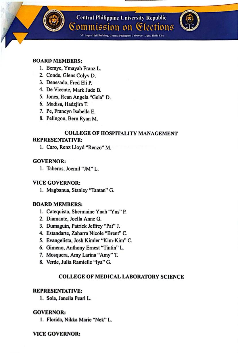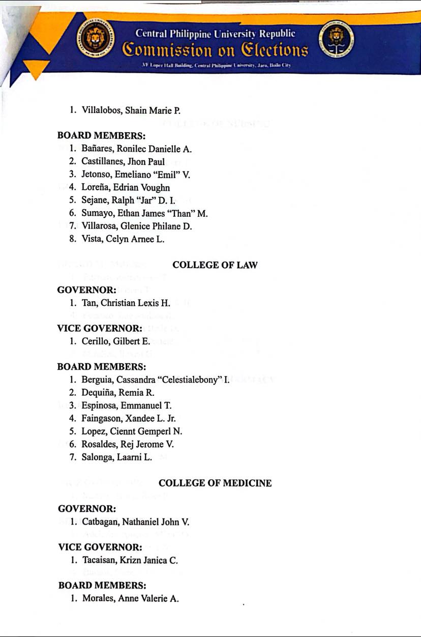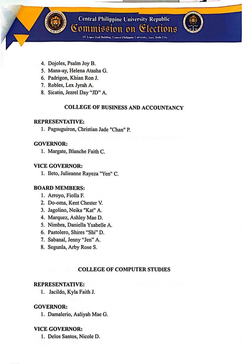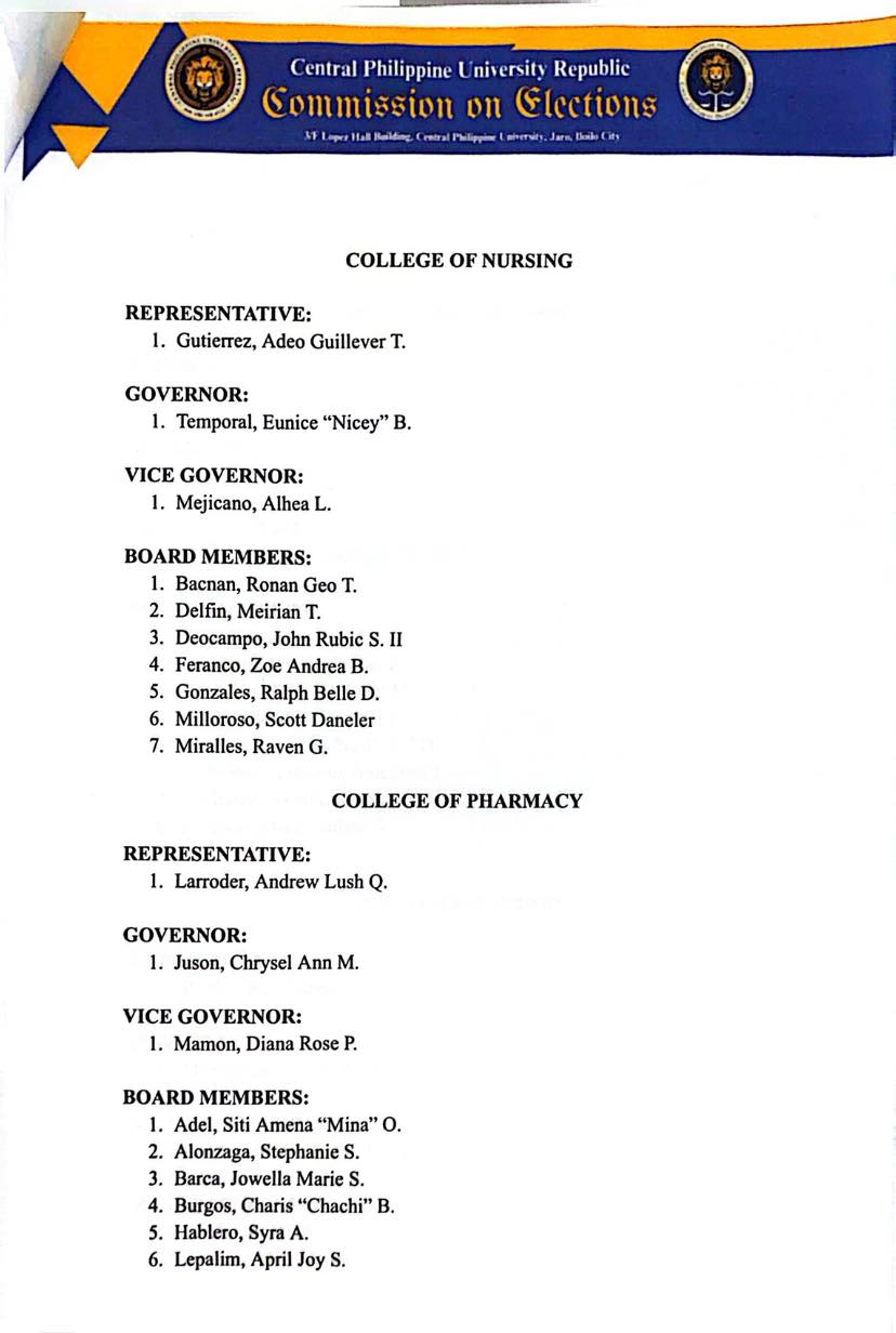 Below is the official list of winners of the March 27, 2026, CPUR Elections as proclaimed by the CPUR Commission on Elections: