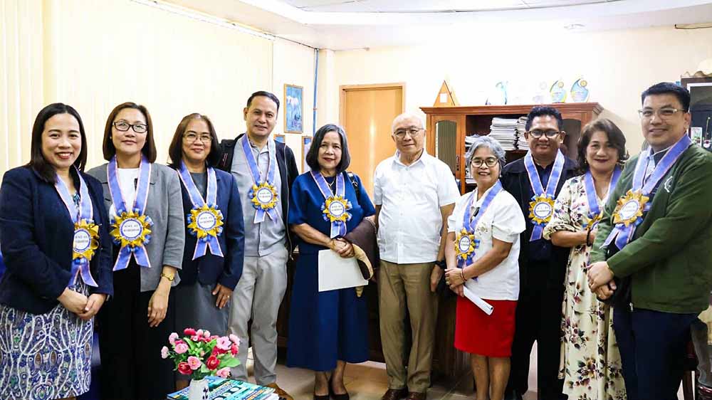 Dr. Stella G. Fernandez (3rd from left), Dean of the CPU College of Arts and Sciences and faculty member of the Life Sciences Department, and Prof. Kareen Jay D. Lozada (2nd from left), RSW, MSSW, Chairperson of the Social Work Department, together with fellow accreditors, join Filamer Christian University President Dr. George O. Cortel for a photo opportunity during the ACSCU-ACI accreditation visit.