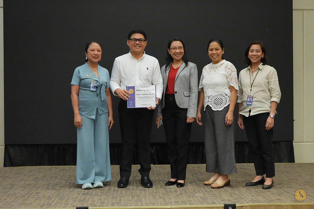 Andre L. Ladigohon (2nd from left), CPA, MPA, Assistant Regional Director of the Civil Service Commission Regional Office V, receives his Certificate of Appreciation together with university administrators during the morning session of the seminar-workshop titled “Excellence in Leadership: Strengthening Productivity, Conflict Resolution, and Integrity in Decision-Making.”