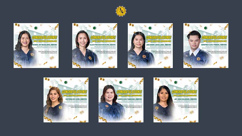 Seven graduates and alumni from Central Philippine University successfully passed the January 2026 PAM Certification Exam for Registered Microbiologists. The results were announced on the official Facebook page of the Philippine Academy Microbiology Inc. last March 31, 2026.