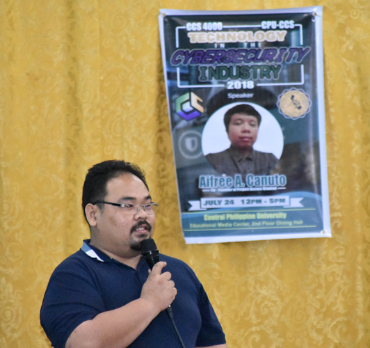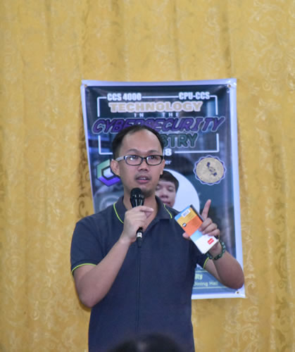 Advocating cybersecurity awareness among Centralians—The College of Computer Science held a seminar on cybersecurity at the Education Media Center on July 24, 2018. The event aimed to orient the CPU community on the different challenges of the cyber age, its opportunities, and its impact to progress and development.