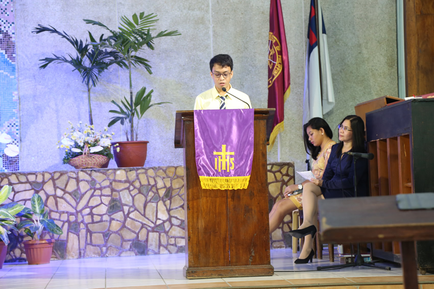 The University Church Choir rendered the song by Tom Fette, “You are the Light,” with Joshua Jonathan C. Quimpo conducting. Joy G. Raso led the invocation with hymns of praise. Ted Rudi G. Aurelio, Cum Laude, led the Litany of Praise, which was followed by a scripture reading from the book of Luke 21:5-19 by Thalna I. Cadagat, Cum Laude.